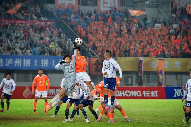 泸州队球员破门瞬间。(图据泸州融媒)