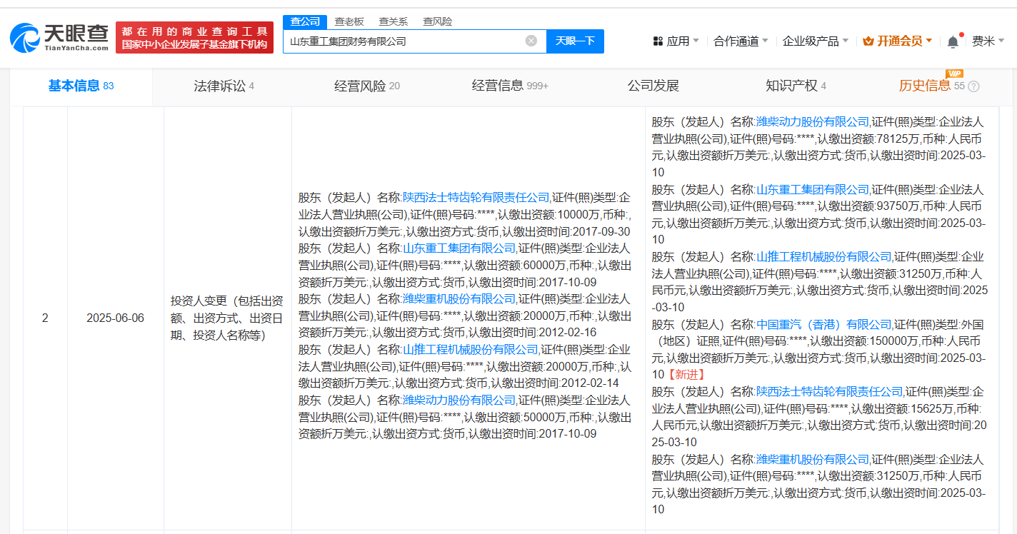 南方财经6月12日电,天眼查App显示,近日,山东重工集团财务有限公司发生工商变更,新增中国重汽(03808.HK)为股东,注册资本由16亿人民币增至40亿人民币,增幅150%联富配资,同时部分高管发生变更。山东重工集团财务有限公司成立于2012年6月,法定代表人为申传东,经营范围为企业集团财务公司服务,由山东重工集团有限公司、潍柴动力(000338)及上述新增股东等共同持股。