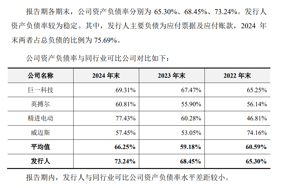 应付类项目的大幅攀升推高了联合动力的资产负债率。报告期各期末,公司资产负债率分别为 65.30%、68.45%和73.24%,均高于可比公司均值;流动比率分别为 1.22 倍、1.16 倍和 1.14 倍金牛股配资,公司资产负债率水平较高,流动比率较同行业上市公司的平均水平偏低。